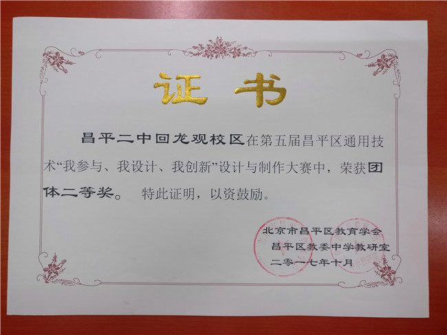 昌平二中荣获团体二等奖,崔悦老师获得优秀指导教师称号。
