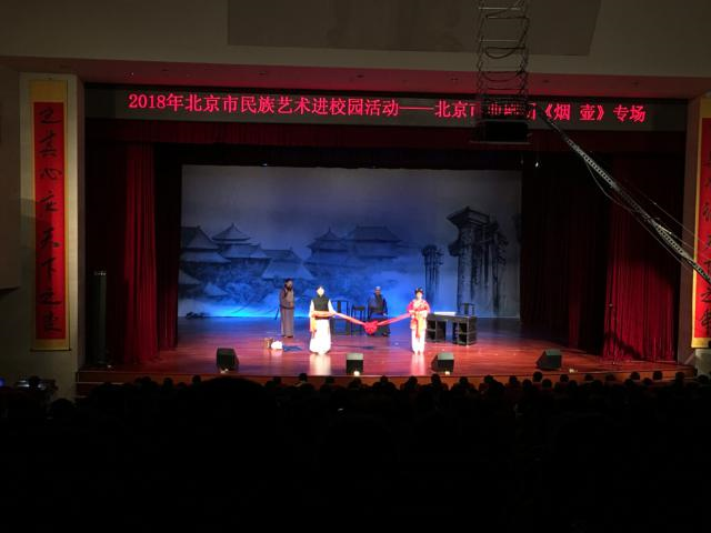 2018年5月16日,昌平二中240名师生到北京王府学校演播厅观看北京曲剧团演出的曲剧《烟壶》。此次活动,是由昌平区教委体美科牵头,为弘扬中华传统文化,丰富学生的校园艺术生活,提升学生的文化艺术素养所组织的活动。北京曲剧是在北京这块土地上诞生的唯一的地方戏曲。它糅合了单弦曲牌和北方民歌小调,听上去有点戏味,又有点歌味,唱腔委婉动听,旋律优美。而且唱词通俗易懂,演员们吐字清晰,不用看字幕也能听得明明白白。唱腔上也没有过多技巧的炫耀,有点类似评剧那种比较生活化的感觉,听着不会让人感觉沉闷和拖沓。而念白时的台词更让人感觉亲切,因为曲剧的台词是在普通话的基础上,以北京语言的声、韵、调为准,具有浓郁的京腔京味。曲剧《烟壶》是根据邓友梅同名小说改编,讲述的是以‘古月轩’鼻烟壶而闻名京城的匠人聂小轩与他的女儿柳娘相依为命,父女二人一个配料一个烧窑。清室王府贵胄九爷,为了独霸聂小轩父女精心烧制的‘胡笳十八拍’图样的孤品鼻烟壶,把聂小轩投入了大牢。在狱中,聂小轩与被洋奴巡警徐焕章诬陷入牢的正直旗人乌世保关在一处。为了不让鼻烟壶的手艺失传,聂小轩决意将绝技传授给乌世保。一年后,聂小轩、乌世保相继出狱。而九爷与徐焕章为了取悦日本人,又让聂小轩烧制‘八国联军进北京’卖国画样的烟壶,并威胁聂小轩如果不照办就要取他双手。聂小轩最终自毁手臂也不丧失气节,以死抗争。柳娘与已成师哥的乌世保结下婚配,并在朋友寿爷的帮助下,一家人逃离了险地。整出戏故事情节饱满,述事严谨,演员表现精彩,动作表情到位,引人入胜。演出深深打动了现场每一名学生,学生们为演员精彩表演报以热烈掌声。今后我校将继续加强民族艺术学习教育,弘扬民族精神,全面提升学生素养。