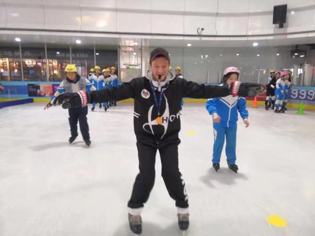 在专业教练的悉心指导下,不会滑的同学都可以独立在冰上行走,有些同学滑冰的技艺提高了很多。