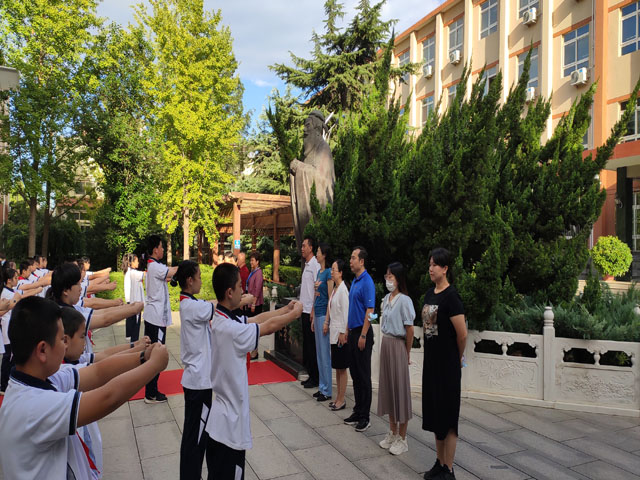 尊师重教是中华民族几千年的优秀传统,初一年级120名学生代表静立孔子像前,完成三拜孔子、行敬师礼、诵读《论语》十二章等环节。通过庄重的仪式,让学生深刻领略传统文化的魅力,为学生播下尊敬师长、明礼守法、崇学向善的种子,培育学生更好的成人成才。教师在接收这种特殊形式节日祝贺的同时,更加坚定立德树人勇挑重担、胸怀仁爱不忘初心的信念。