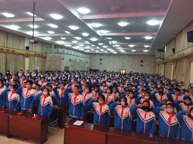 大会第四项,全体少先队员起立,高举右拳,在主持人的带领下重温少先队誓言。“准备着,为共产主义事业而奋斗!” “时刻准备着!” 铿锵有力的誓言响彻整个会堂,磅礴的气势振奋人心。