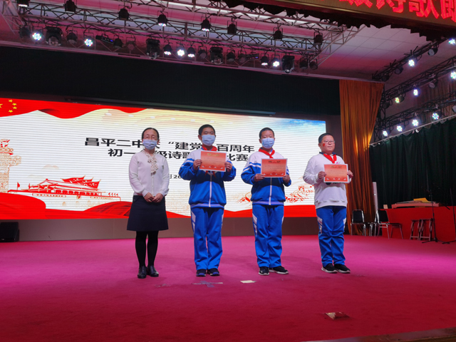 一百年风雨兼程,历尽坎坷沧桑;一百年风云巨变,共建伟业辉煌。为迎接2021年中国共产党建党100周年华诞,热情讴歌中国共产党领导中国革命和建设取得的伟大成就,昌平二中政府街校区初一年级于10月26日下午成功举办了庆祝建党一百周年诗朗诵比赛。下面让我们来一睹初一师生们的风采吧!