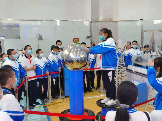 由于人数较多,社团成员按学段分为高中部和初中部,先后参观了位于石油大学实验楼七层的机电与储运工程学院实验室、位于一层的石油大学教学演示中心。