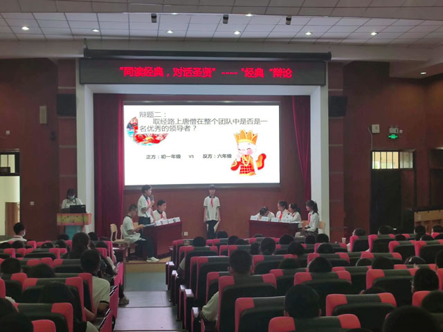 第二场辩论赛,辩题为“取经路上唐僧在整个团队中是否是一名优秀的领导者”。辩手们反应灵敏,犀利攻辩,妙语连珠,引经据典,有力回击对手,赢得一次次热烈的掌声!