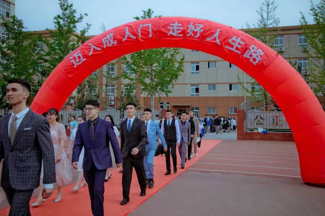 室内部分结束后,全体学生走到室外,来到学校为全体高三毕业生精心设计的操场,走成人门,照合影,留下这段最美的记忆。