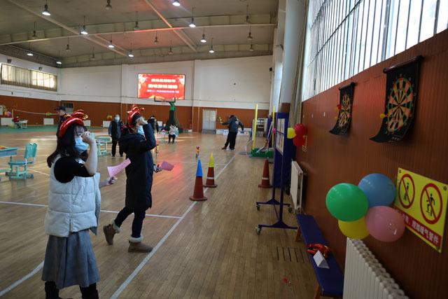 活动现场气氛热烈,笑语欢声,充满游艺活动带来的快乐。教职工们头戴喜庆头饰,参加了“旱地冰壶”,体验冬奥项目乐趣,用行动助力冬奥;将中华传统文化与娱乐有机融合的“投壶”项目,吸引老师们积极参与,大家相互交流,热烈切磋;“推铁环”、“ 套圈”等项目唤起诸多中老年教师儿时快乐的回忆;保龄球、飞镖、黏黏球、四平八稳、彩球消消乐、灭鼠先锋、“鸡”到碗里来等游艺项目,让老师们乐在其中,有效舒缓了情绪,促进教职工身心健康。