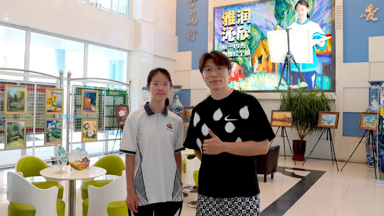 金秀荣校长认真参观了展览,对展览给予了很高的评价,对肖雅欣同学的才能给予肯定,并鼓励她保持对艺术的热忱和坚持。
