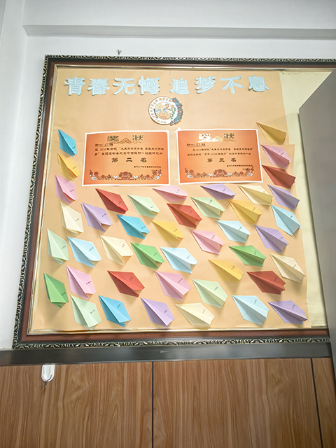 风采板上的优秀作品,一笔笔鲜活的字体,仿佛一张张希望的答卷。一张张彩色纸条,寄托了同学们对自己未来的目标与期望。积极向上,是22班永远不变的态度。