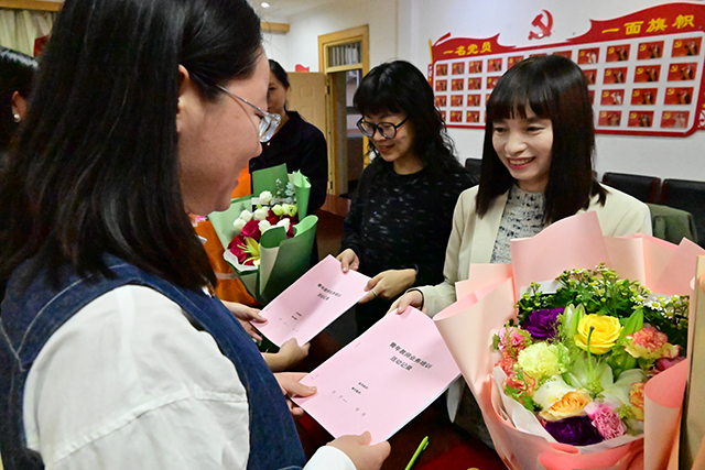 随后,本届徒弟代表朱砚昭老师发言,她首先感谢学校提供的学习机会和师傅们的无私奉献,其次,她代表青年教师表态,将守住"用心""虚心""全心",积极向师父请教,全力以赴提升教学水平,不负教诲,努力成为学校发展的点点星光。