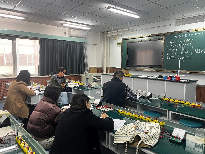 初三年级刘超老师授课题目为《家庭电路中的安全用电》,本节课刘老师通过自制实验器材,带领学生模拟“人在家庭电路中的各种触电事故”,并分析事故原因,提出预防措施。体现了从生活走向物理,从物理走向社会的教育理念。
