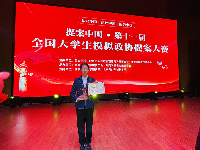 12月6日-7日,孙宇琦、欧阳玥小组作为昌平区唯一一支代表队前往外交学院继续参加模拟政协提案交流展示活动的复赛小组赛、决赛,经过复赛汇报提案、现场答辩、优化完善提案,决赛汇报答辩,最终获得"第十一届提案中国·全国大学生模拟政协提案大赛"中学组三等奖的好成绩。