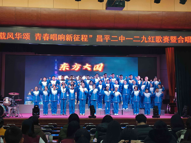 如今,我们正站在"两个一百年"奋斗目标的历史交汇点上,在中华人民共和国75周年的伟大时刻,重温一二·九运动的斗争历史,传承爱国情怀和革命精神,昌平二中特举办"七十五载风华颂,青春唱响新征程"一二九红歌赛暨合唱比赛决赛,以此汇聚师生力量,引领广大学生听党话、跟党走,以奋发向上的精神风貌献礼祖国。