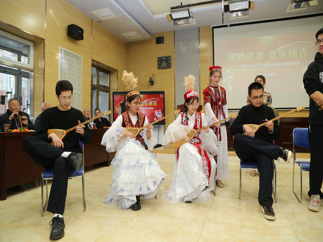 新疆学生带来的舞蹈《石榴籽一家亲》为演出拉开序幕,学生们青春洋溢的舞姿,传递出各民族学生间深厚的友谊和紧密相连的团结精神,共同绘就和谐共融的绚丽画卷。退休教师白丽英老师演唱的《思念随着鸿雁飞》,歌声婉转悠扬,让大家深切感受到对亲友的满怀思念。耳熟能详的《花儿为什么这样红》经学生用新疆传统民族乐器进行演奏,瞬间唤起了退休教职工情感共鸣,在熟悉的旋律中怀念美好的过往,同学们向老教师介绍了本民族的乐器并进行了弹奏,直观感受新疆乐器的独特魅力。退休教师沈静、郭健、赵荣健身姿曼妙、舞姿翩迁,为大家奉上了舞蹈《故乡的云》,获得阵阵喝彩。最后,由教育教学领导、新疆部主任、团委书记及年级主任李春梅、王燕霞、周彤、王玲、李强、高佳星为在场人员朗诵了一首由中国作协会员、诗人,昌平二中教师马永珍创作的诗歌《我们都是光芒的朋友》,表达教师愿如光芒不忘教育初心,坚守育人使命,陪伴学生健康成长,助力学生筑梦飞翔。