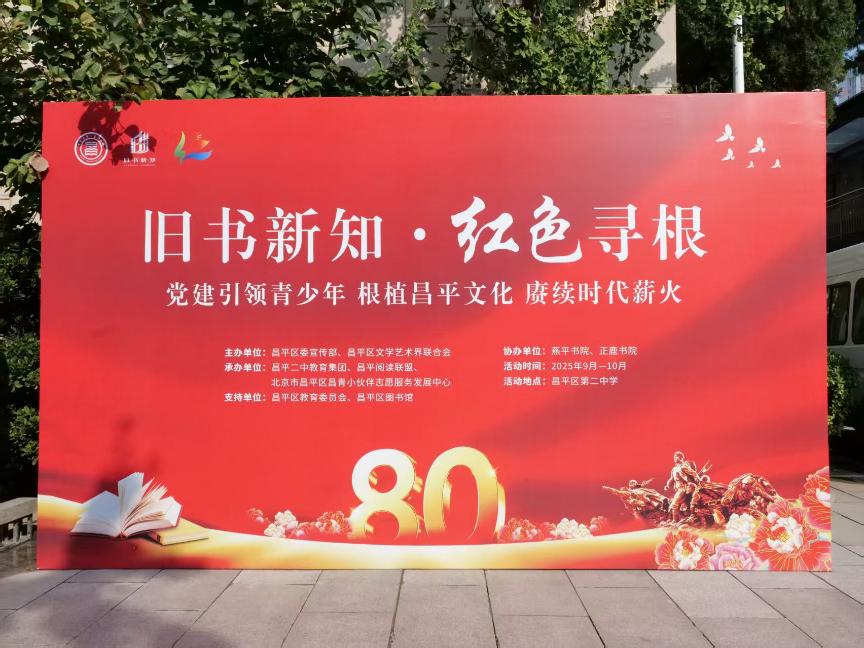 2025年9月15日,“旧书新知·红色寻根——党建引领青少年,根植昌平文化,赓续时代薪火”活动启动仪式在昌平二中政府街校区成功举行。活动通过书籍捐赠、文化讲座和实践倡议等形式,引导青少年深入了解家乡历史、传承红色基因、厚植家国情怀,充分体现了昌平二中在党建引领下以文化人、以文育人的教育理念,展现了学校在推动文化传承与青少年成长方面的积极作为。