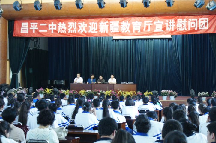 新疆财经大学学生处副处长阿不来提围绕新疆飞速发展的形势向师生们作了宣讲,教育学生珍惜当前民族团结的良好的教育环境,并向昌平二中全体内高班学生提出了希望和要求。宣讲结束后来自新疆电视台、新疆武警文工团的演员们为昌平二中的全体师生奉献了一台精彩的的新疆歌舞节目。