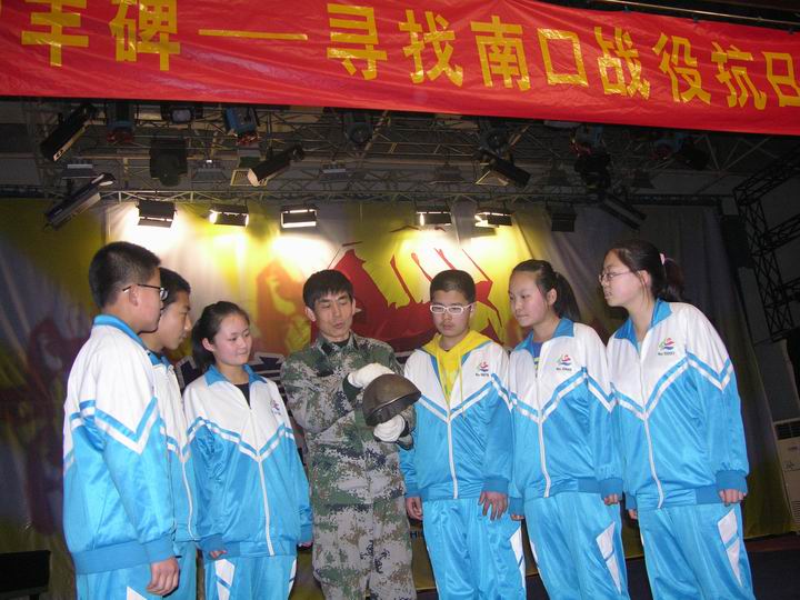 在报告会上,杨老师声情并茂的讲述了自己6年来的寻访经历,给同学们展示了挖掘到的战争遗物,不仅让同学们了解了南口战役这段历史,同时也对同学们进行了一次深刻的爱国主义教育。我校春晖戏剧社已将杨老师的事迹改编成小品《迟来的丰碑》,此小品将代表学校参加昌平区第十五届学生艺术节。