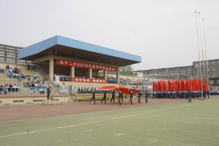 2012年4月28日昌平二中迎来“运动、健康、快乐”为主题2012年体育节闭幕式暨春季田径运动会。本次运动会在二中本部和回龙观校区同时召开,出席运动会本部开幕式领导有昌平区教委李成旺主任、校外教育协会张泽义主席、昌平区教委体美科王长军科长。出席回龙观校区开幕式的领导有回龙观地区工委郭向东书记,回龙观地区办事处储鑫主任、易宏琤副主任,回龙观地区办事处党办张主任及回龙观地区龙跃园二区居委会张韶青主任。在开幕式上各班代表队进行了入场式、广播操、行进管乐、校园集体舞、团体操、礼仪操表演。