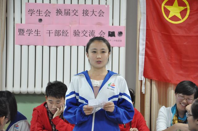 10月19日下午,昌平二中政府街校区阅览室欢声笑语,在团委书记王丽娜老师的主持下召开了学生会换届交接大会暨学生干部经验交流会。会上,新一届学生会成员向上一届学生会赠送礼物,新、老学生会主席、团委副书记、各部门部长以及所有干事对学生会工作畅所欲谈,大家相互学习、相互交流。第十一届学生会主席王良对新一届学生会所有成员给予了宝贵的建议和希望,新一届学生会主席赵静怡对新成员宣读了学生会规章制度,要求大家遵守各项制度,做好学生会的工作。本次会议还邀请了原昌平二中第八届学生会干部张琦瑛、第十届学生会主席王洛为大家交流工作经验,使学生会成员受益匪浅。