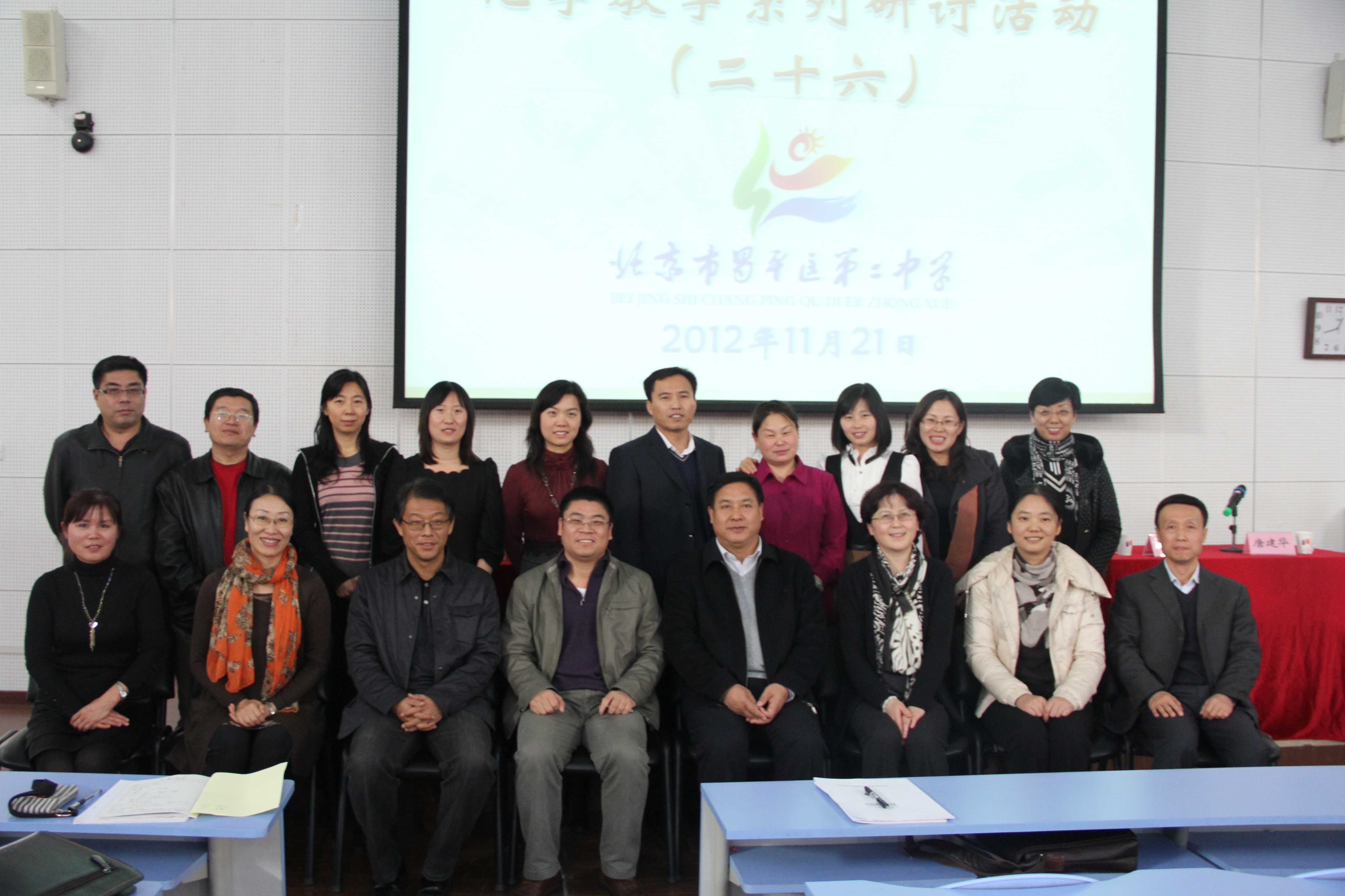 为展示近年来昌平区高中化学教学改革实践成果,促进教师和学生的自主成长,在昌平区教师进修学校和昌平二中的支持下,2012年11月21日,由北京教科院基教研中心主办的北京市高中新课程化学教学系列研讨活动首次落户郊区学校,在昌平二中回龙观校区举行第二十六次研讨活动,来自各个区县的近200多名教师、领导及专家参加了此次研讨。