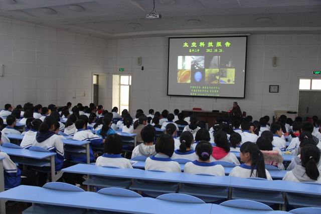 2012年10月26日下午,中科院空间科学与应用研究中心常务理事潘厚任教授莅临我校回龙观校区,在阶梯教室为高一年级同学们作了一场精彩的“太空科技报告”。