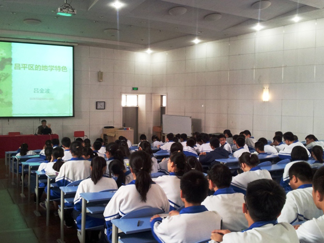 2014年4月14日第七、八节课,回龙观校区高一年级的同学们来到阶梯教室聆听了一次生动的讲座,我们有幸邀请到北京市地质调查研究院的吕金波教授为我们讲解昌平的地学。