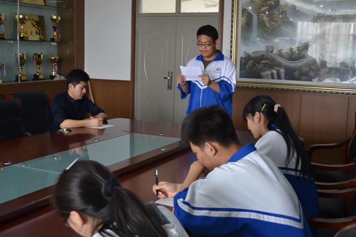 选拔赛得到了同学们的热烈响应,来自初一、初二、高一、高二的三十余名同学参加了这次比赛。选手们随机抽取一段主持词,利用几分钟的时间做准备,然后上场主持。重在考察选手们主持方面的基本素质,包括音质、音色、语气,以及对文稿的把握程度。评委由学生会主席呼和、副主席陈野、团委副书记卢策、宣传部长孟桐、广播站长石宇等几位同学担任。