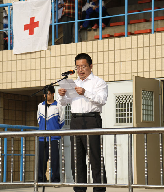 王校长在开幕式上致开幕词,号召昌平二中学子们拼搏向上,力争上游,顽强奋斗,团结协作。赛出风格,赛出实力。通过比赛,加强同学友谊,展现自身风采,磨练坚韧意志,锻造强健体魄。为了祖国的明天,为了家庭的未来,为了学校的期盼,为了自己的理想将满腔的豪情倾注在竞争的赛道上。