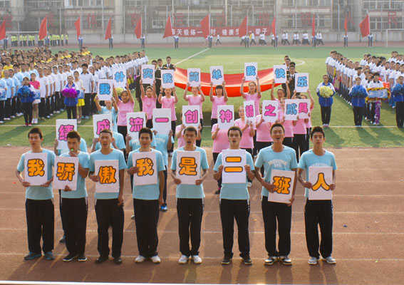 每个班级一一经过主席台前,以饱满的热情,昂扬的斗志展现出自己最亮丽的青春风采,诠释着自己最响亮的青春誓言。今天我们洒下汗水种下希望,明天我们收获成功、分享喜悦!