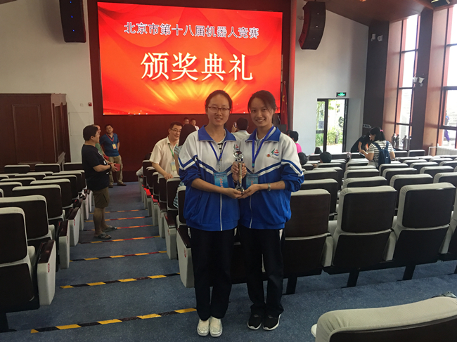 高一11班赵宇兴和尚雪参加的能力风暴WER能力挑战赛中以领先第二名300多分的优势获得了高中组冠军, 高二13班王泽鑫和高一11班张桐参加的Botball项目获得了高中组冠军,初二4班刘俊阳、初二6班陈浩楠获得初中机器人足球项目的冠军,这三支队伍将在暑假代表北京市出征在浙江省嘉兴市举办的全国赛。