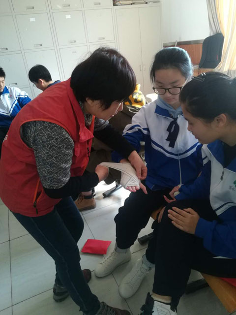 2018年1月19日,昌平二中回龙观校区高一年级学生和部分老师一起参加了由北京市红十字会开设的应急救护培训课程。上午红十字会大讲堂的老师讲解了“心肺复苏、创伤救护”的知识,下午带领每一名学生进行了心肺复苏和现场包扎止血的实际操练。同学们对着模型认真地进行胸外心脏按压和人工呼吸,接着又相互练习包扎止血,最后通过了红十字会的考核。共135名学生和10位老师参加了此次培训,并且全部获得了初级急救员的证书。本次活动旨在培养学生救人及自救的意识与技能,潜移默化地向学生渗透珍惜生命,挽救生命的人道主义精神。