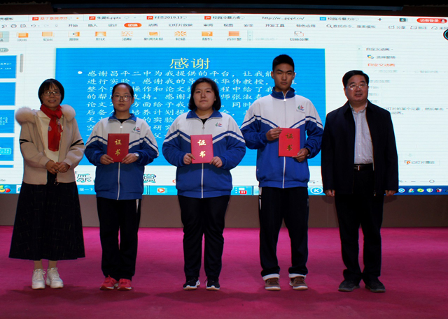 最后所有参会领导与获奖同学及昌平二中科技教师合影留念。