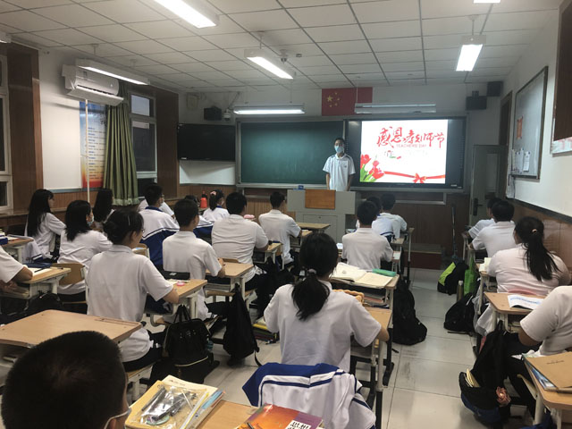 又是一年金秋季,伴随九月的骄阳,品尝收获的喜悦,带着满怀的感恩,同学们一声声:老师节日快乐的祝福,为第36个教师节的到来奏响欢快的音符。在昌平二中教育集团党委的领导下,9月7-10日学校工会和校团委会联合在政府街校区和回龙观校区开展了主题为“缤纷开学季 爱在教师节”系列庆祝活动,充分彰显广大教职工在新冠肺炎疫情防控和教育教学改革过程中,立德树人勇挑重担, 胸怀仁爱不忘初心的良好精神风貌。