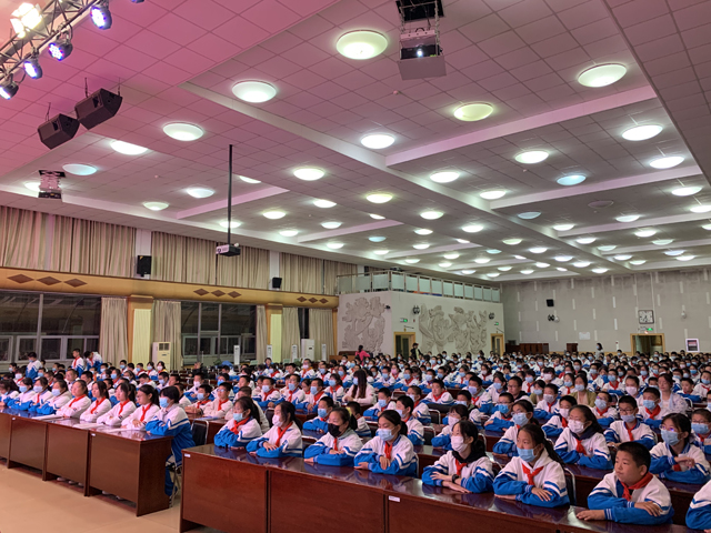 在精彩纷呈的节目之后,教学主任候老师作为评委代表上台点评,为初一学生们的创意创新及认真投入点了个大大的赞,并激励同学们继续发扬爱国主义精神,让爱国不止停留在口号上。