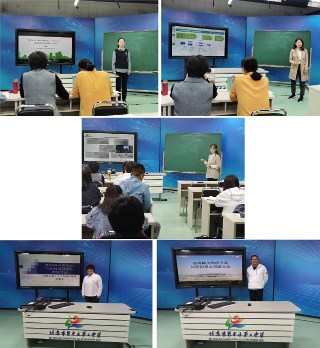 南口十五中的张霞、苏慧芳老师,昌平一中的陈娜、何茂瑜老师,昌平五中的张宇明老师通过说课,展示了“建构物质认识模型”、“探秘身边的化学”、“黄铜渣中提取有价产品”、“建构解决物质制备问题思路方法”、“建构解决物质分离问题思路方法”五节课的设计。他们分别从课程标准分析、教材分析、对教学本体的认识、学生分析、教学目标、教学过程分析、教学反思等角度展开说课。通过说课,他们展现了对化学核心素养内涵、发展水平的认识和理解、对模型认知素养教学的研究和解读、对学生认识发展水平的关注和调控。