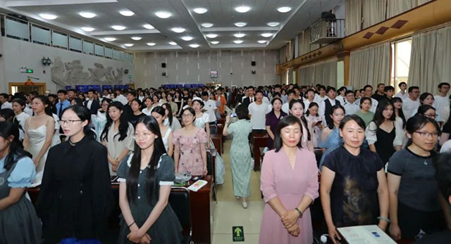 昌平二中于6月11日举行2024届高三“以青春之我,建设青春之中国”成人礼暨毕业典礼。典礼在庄严的国歌声中拉开序幕。