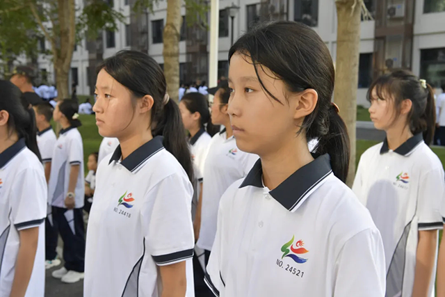 “长城下,文脉中,传承千年雅颂风……”开营仪式后,全体同学齐学、齐唱校歌,展现出蓬勃向上的精神风貌。在接下来的六天里,学生们将在训练员的指导下进行严格的训练,学习坚毅品质,努力成长为爱国、上进的优秀青少年。