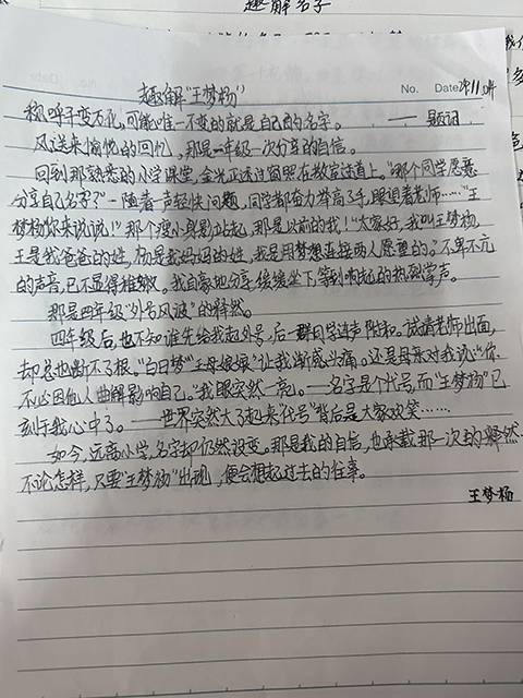 查阅字典、寻读趣谈、采访父母,孩子们在活动过程中进一步明确了自己名字的含义,或用随笔、或以视频的方式展示分享。悄无声息中,中国汉字文化根植在了每个学生心中。