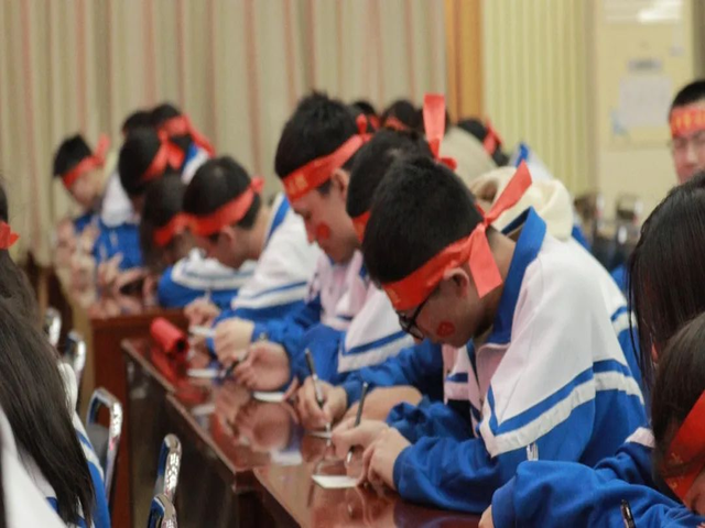 学子们拿起笔,书写下自己的宏愿与目标。每一笔每一划都充满了对未来的期待与对梦想的执着。笔书宏愿,志在巅峰!