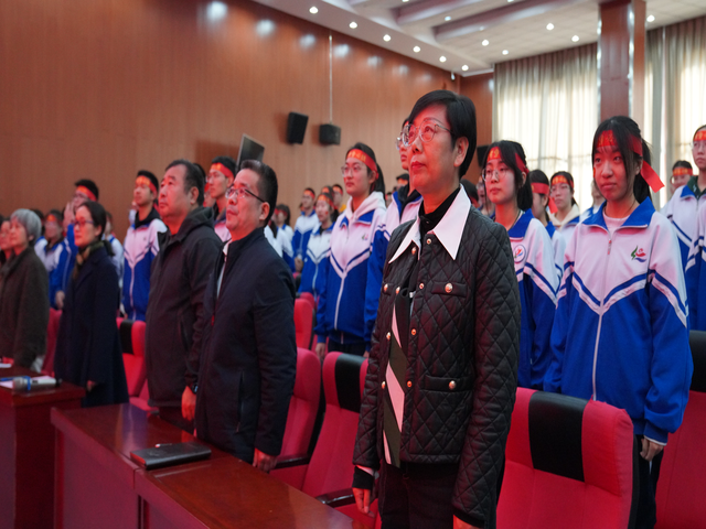 激昂国歌,唤起壮志。伴随着庄严的旋律,誓师大会正式拉开帷幕。全体与会领导、师生、家长庄严肃立,高唱国歌。