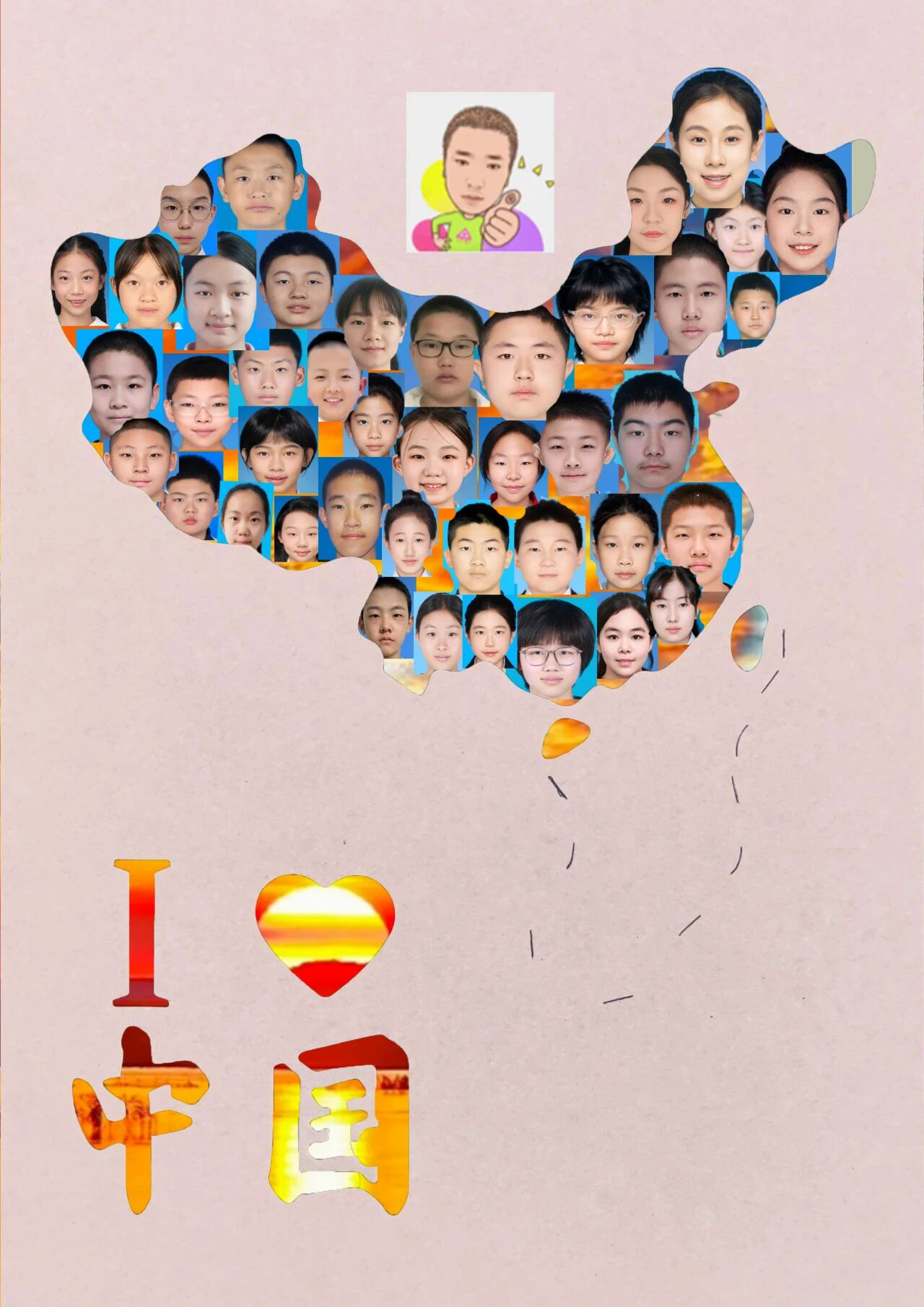 初一9班:山河锦绣如诗,日月同辉为贺,愿祖国恒久昌盛,风华永驻。