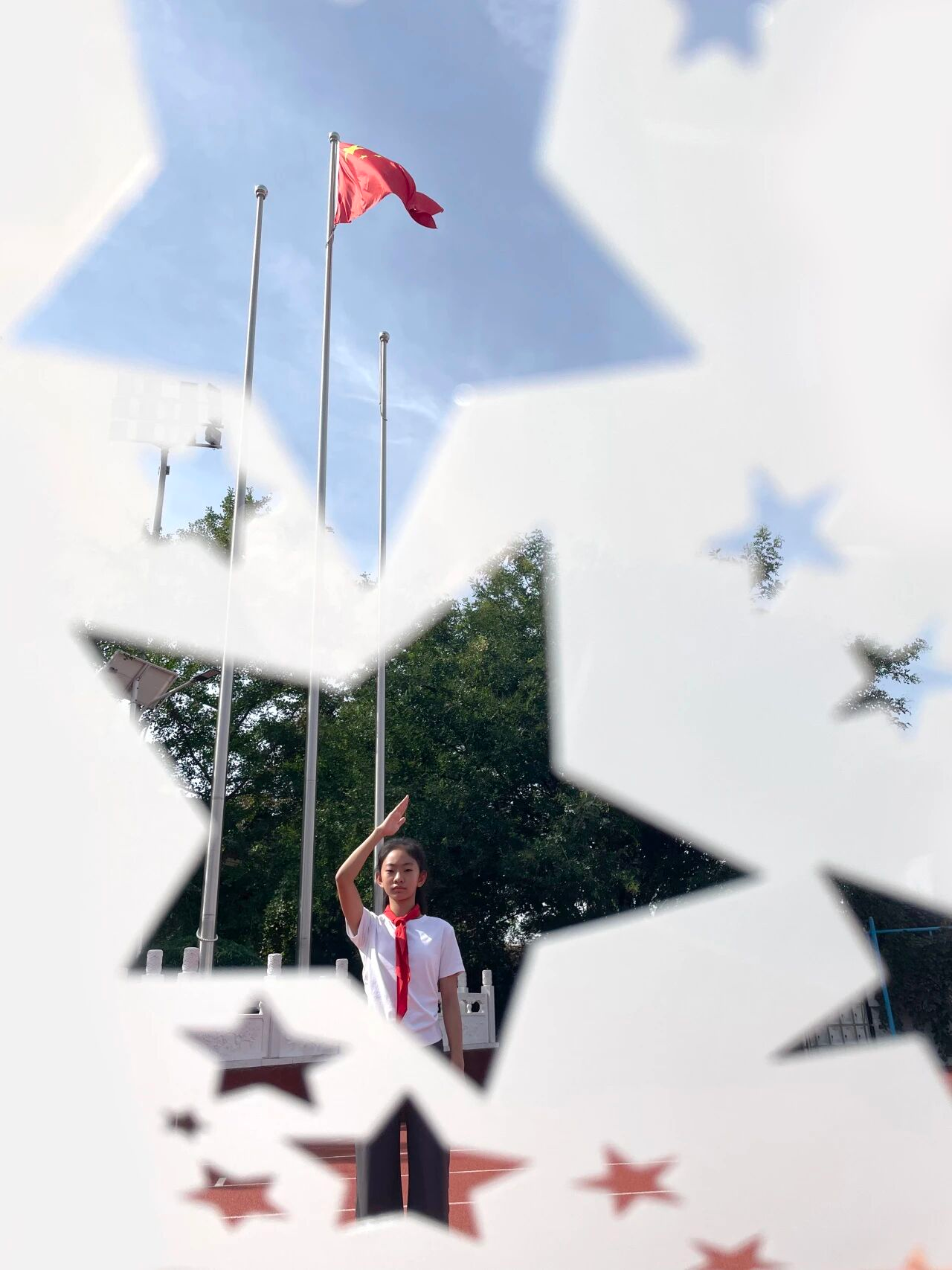 同学们在校内统一摆出富有朝气的姿势,将对祖国的热爱融入每一张画面。照片里,同学们笑容灿烂、姿态昂扬;文字中,真挚情感跃然纸上。这些作品既是同学们青春风采的展现,更是对祖国华诞最热烈的礼赞!