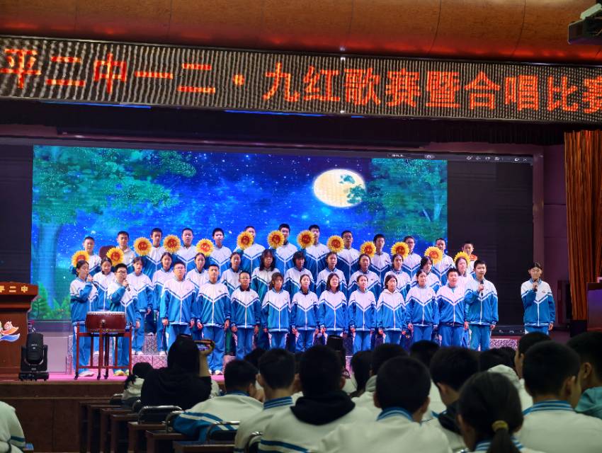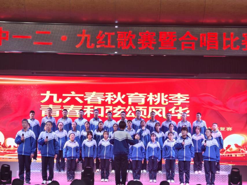 为纪念“一二·九”运动90周年,传承红色基因,厚植爱国情怀,我校“一二·九红歌比赛暨合唱比赛复赛”在报告厅隆重举行。来自各年级初赛一等奖的11个班级同台竞技,以歌声回望峥嵘岁月,用旋律抒发报国热忱,为现场师生呈现了一场震撼人心的红色文化盛宴。