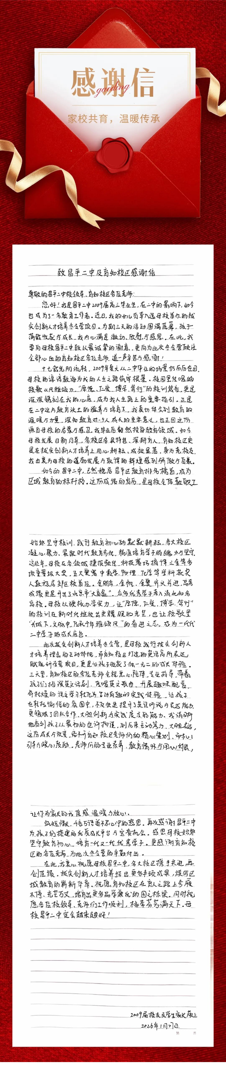 从二中毕业生到学生家长:一封感谢信,两代二中情!