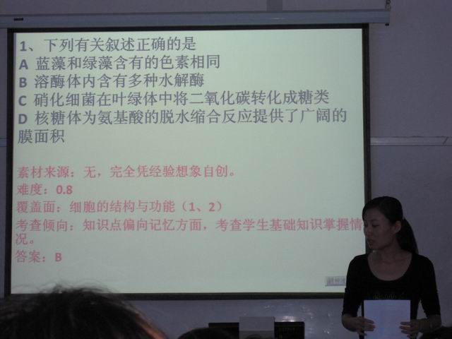 昌平二中一直力促教师们多学习、多交流,希望大家能够发挥集体智慧,共同进步,并为教师提供各种平台共同发展。生物教研组积极组织教师集体备课,攻破疑难章节,共同进步。2012年9月28日,政府街校区高二、高三年级全体生物学科教师对《物质跨膜运输的实例》一节进行了思路分析、课程设计,使本节课完善起来。