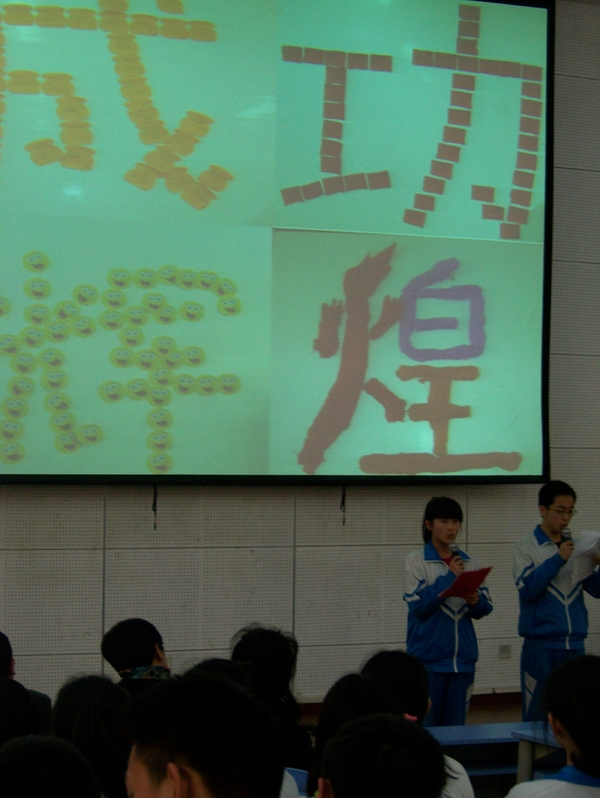 3月15日,回龙观校区初三年级在阶梯教室召开了距离中考100天誓师大会,大会上,通过一张张ppt照片,回顾了3年中师生一起度过的点点滴滴,家长代表激励、祝福学生,学生代表也表达了自己的志向和理想。金秀容副校长代表学校鼓励大家要做好最后的冲刺并深深的祝福初三年级师生。刘玉红老师代表教师送去了对学子的祝福,最后全体教师宣誓要尽自己最大的努力帮助学生中考成功,最后学生宣誓要奋斗百日,要成功,要辉煌!