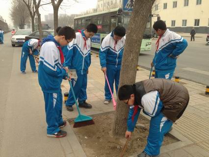 2013年是毛泽东同志“向雷锋同志学习”题词50周年,为继续发扬和践行雷锋精神,培养青少年踏踏实实地用自己的能力服务他人、奉献社会的能力,昌平二中回龙观校区团委、学生处计划在今年三月份共同组织开展“弘扬雷锋精神激发青春正能量”主题月系列活动。 2013年3月6日中午,初一年级入团积极分子同学50余人响应号召,参加了“环保先锋队”活动。同学们利用中午休息时间,清扫了校园周边卫生,捡拾白色垃圾并清除了站台及电线杆上的非法张贴物。此次活动强化了同学们保护生态环境的意识,用实际行动为建设生态二中做出贡献,并在活动中践行着雷锋精神、激发出青春正能量。