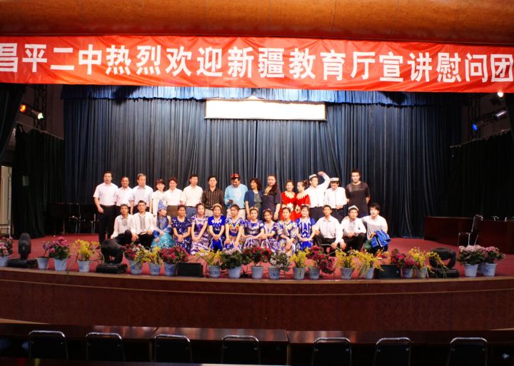 5月26日上午,由教育部民教司,新疆维吾尔自治区教育工委、教育厅组织的宣讲慰问团一行8人来到了昌平二中,看望了内高班的各族师生,衷心感谢昌平二中对内高班学生无微不至的关怀。 新疆财经大学学生处副处长阿不来提围绕新疆飞速发展的形势向师生们作了宣讲,教育学生珍惜当前民族团结的良好的教育环境,并向昌平二中全体内高班学生提出了希望和要求。宣讲结束后来自新疆电视台、新疆武警文工团的演员们为昌平二中的全体师生奉献了一台精彩的的新疆歌舞节目。 此次宣讲活动,进一步提高了全体师生对党的民族、宗教政策的认识。使学生在学会感恩惜福的基础上,更加明确自己在维护祖国统一、促进民族团结、实现全国各族人民共同进步这项伟大事业上的责任与使命。